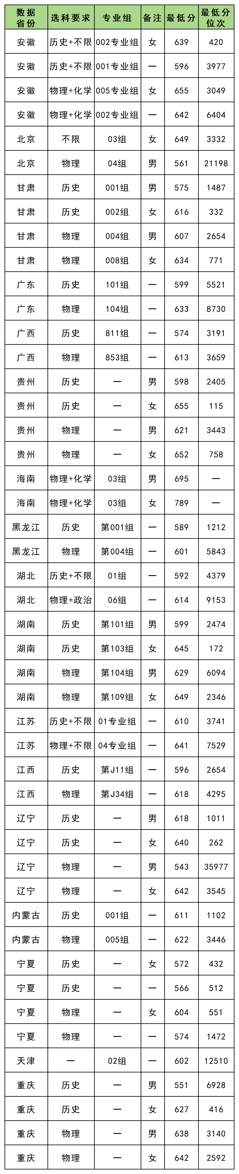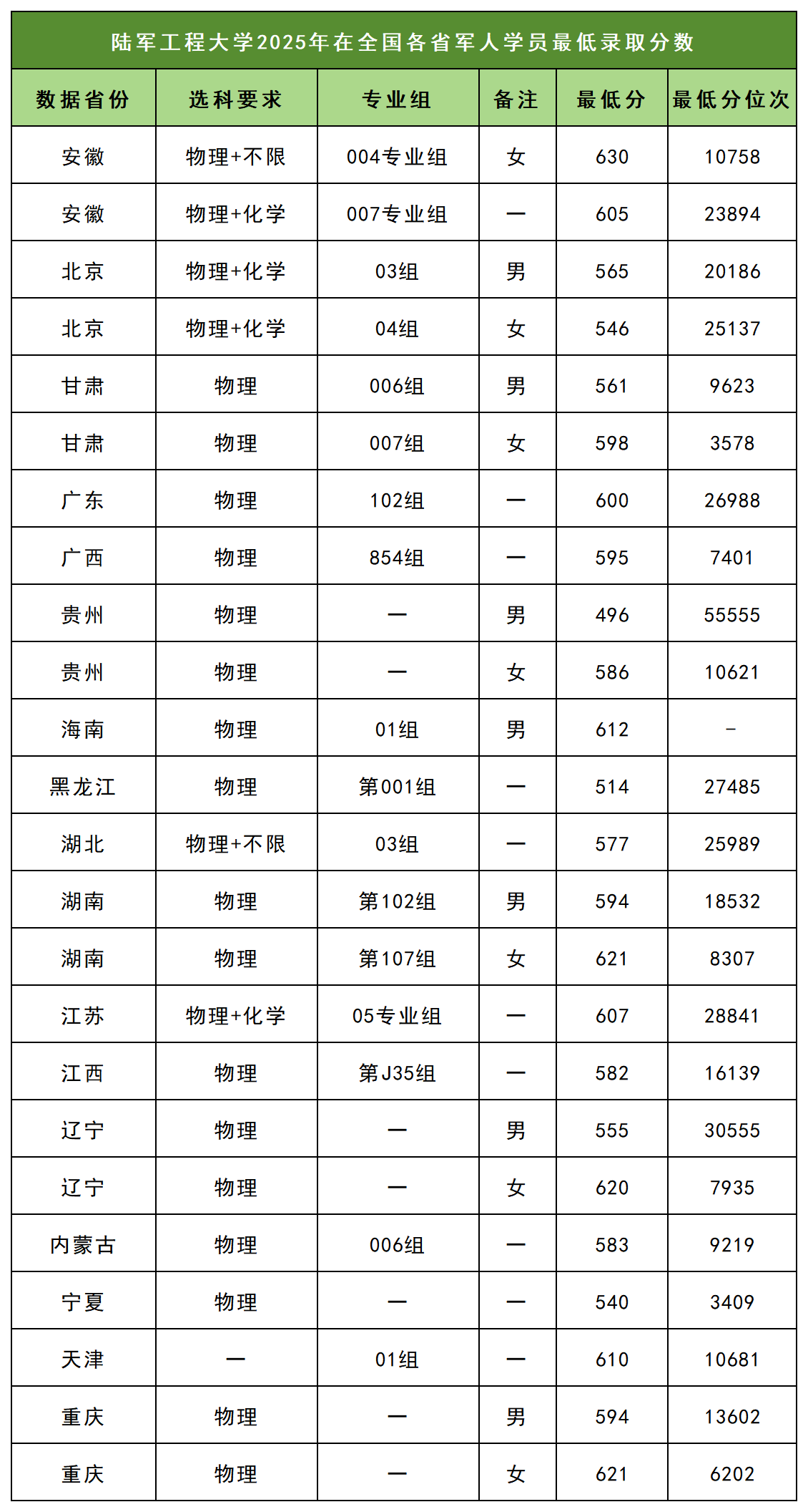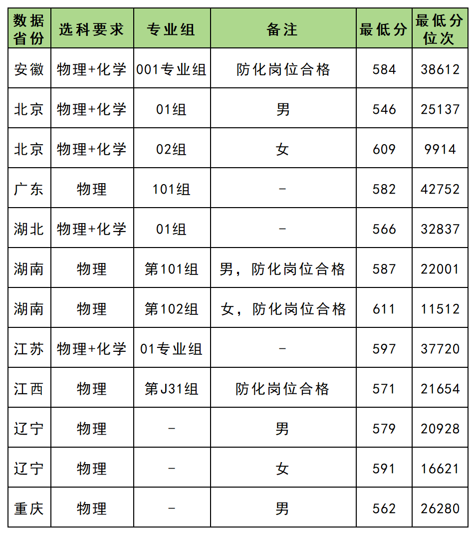 陆军防化学院其他省市2020-2024年录取分数可点击下方链接查看: