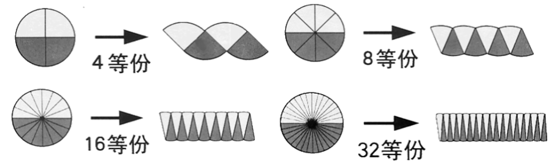 我们先来回忆圆面积计算公式的导出方法: