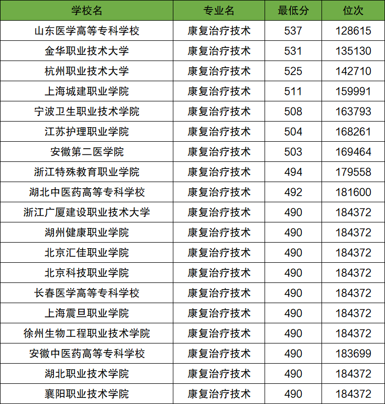 2.康复治疗技术专业录取分数线
