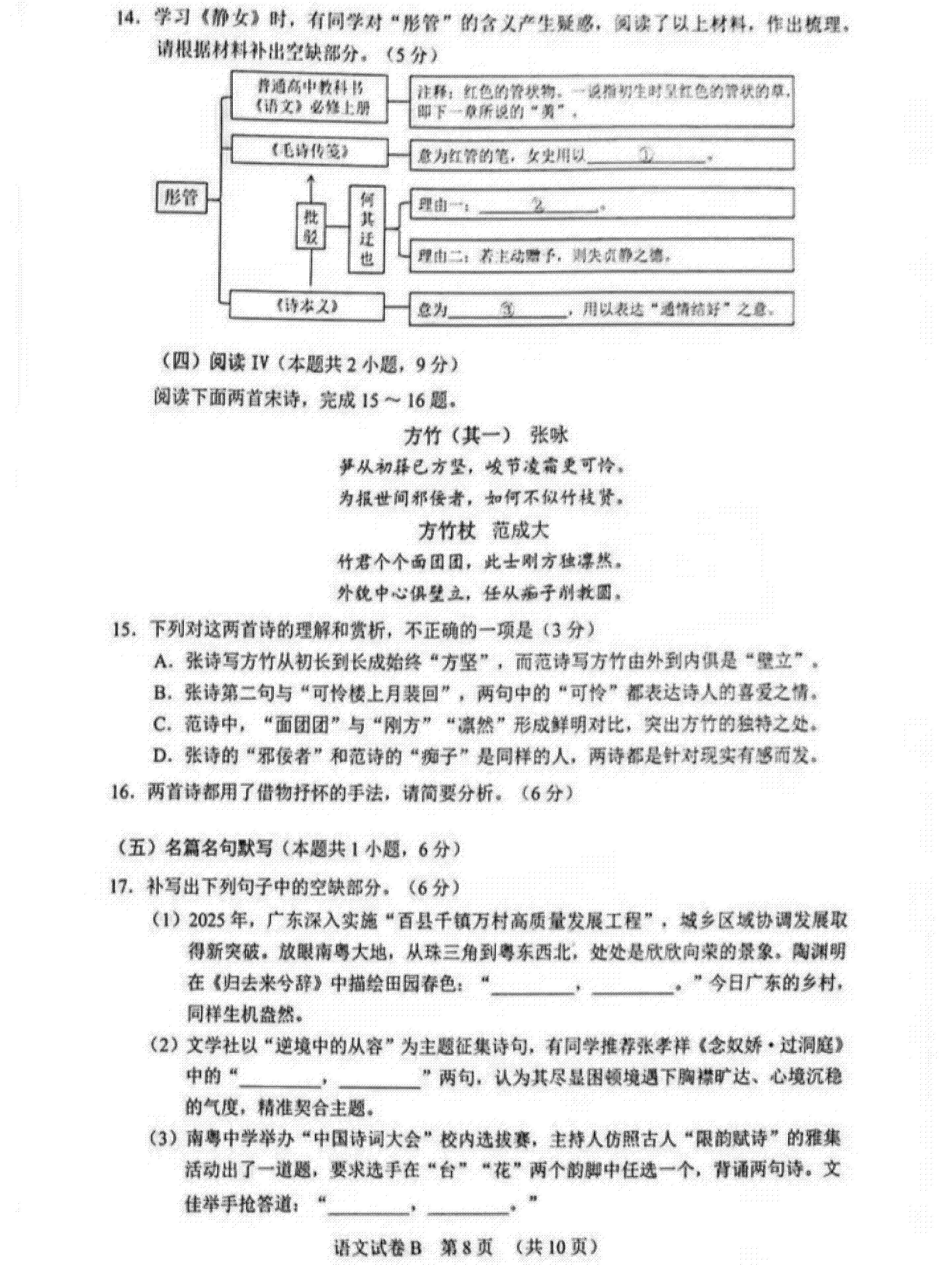 目前语文试卷及答案均已公布,同学们可自行核对。