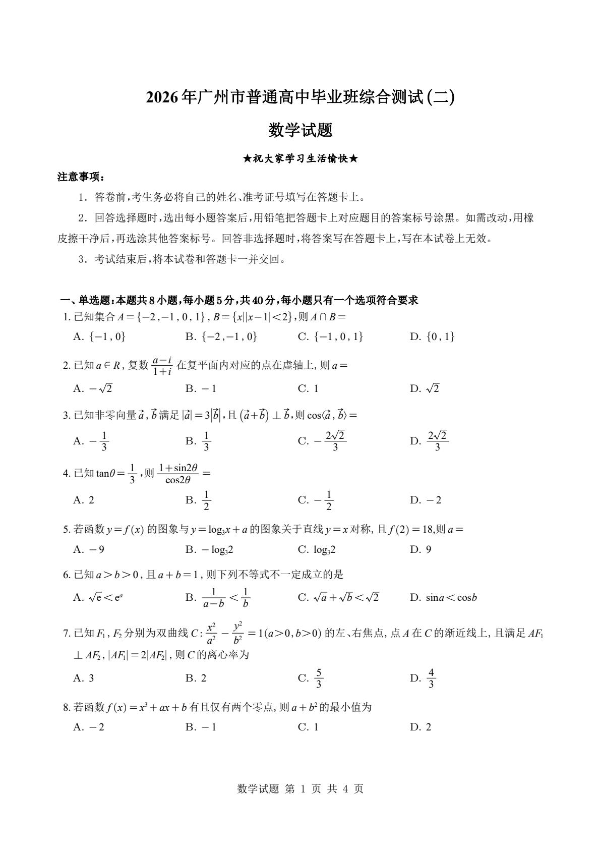 2026年广州二模已于4月20日开考,该考试作为高考前最具参考价值的全真模拟之一,能帮助考生精准诊断知识短板、适应考试节奏并科学预估高考位次。