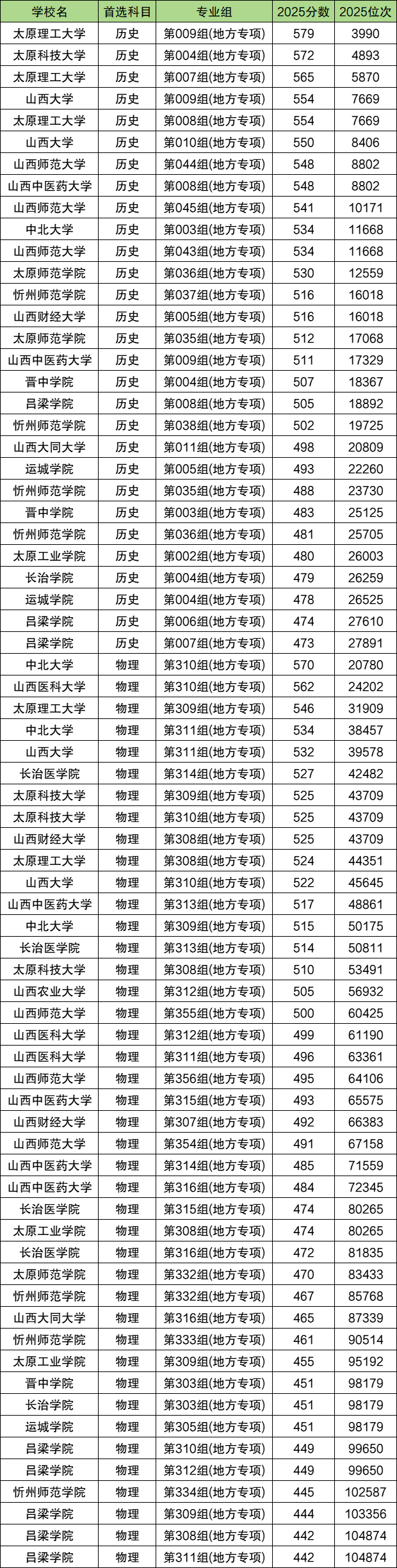 仍然以山西为例,2025年地方专项计划最低分:历史类473分、物理类442分。