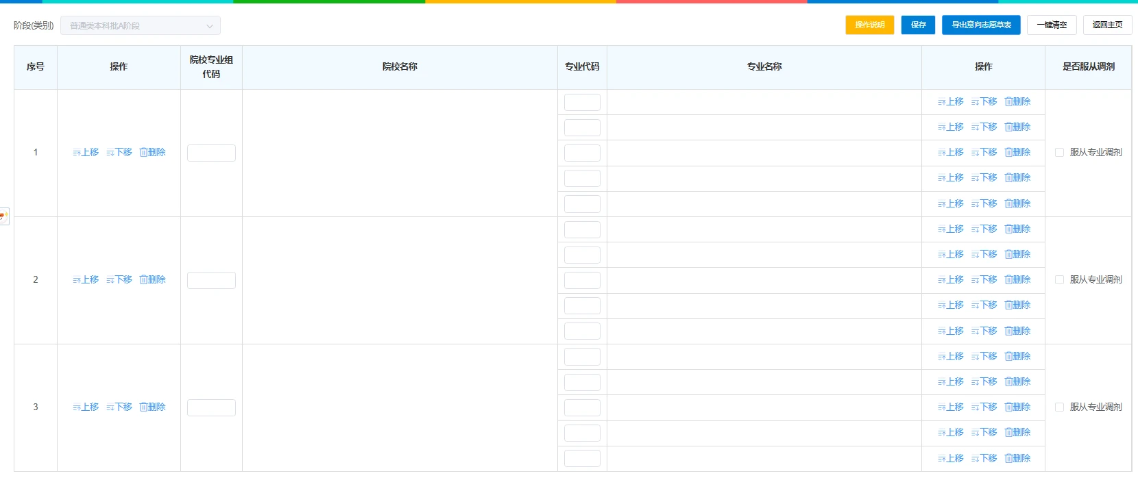 由于本文篇幅有限,这里仅列举普通本科批次志愿草表情况。在高考志愿模式不变的情况下,相邻年份的志愿草表一般不会有变化,可放心参考。