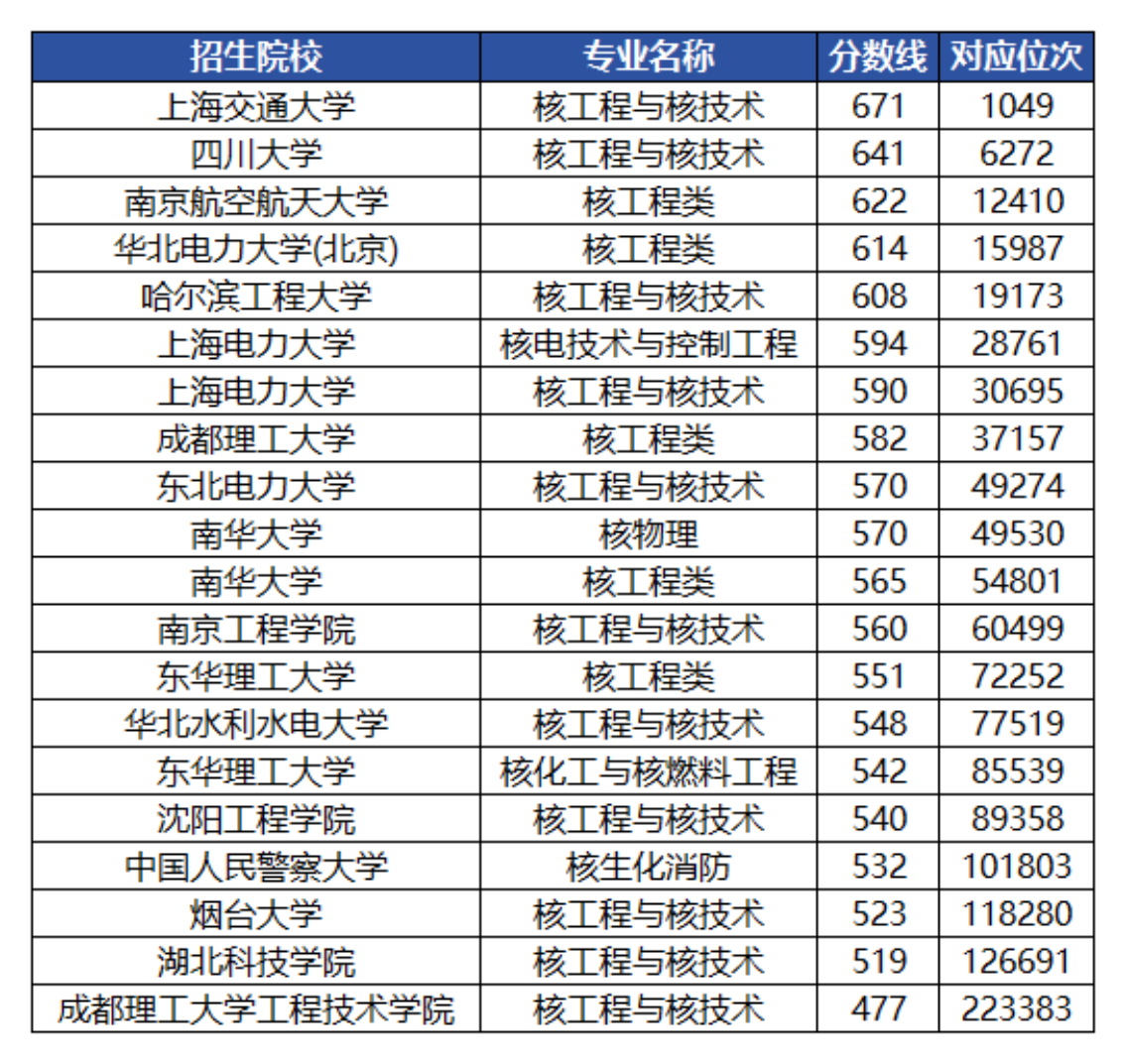 三、核工程专业大学录取分数线