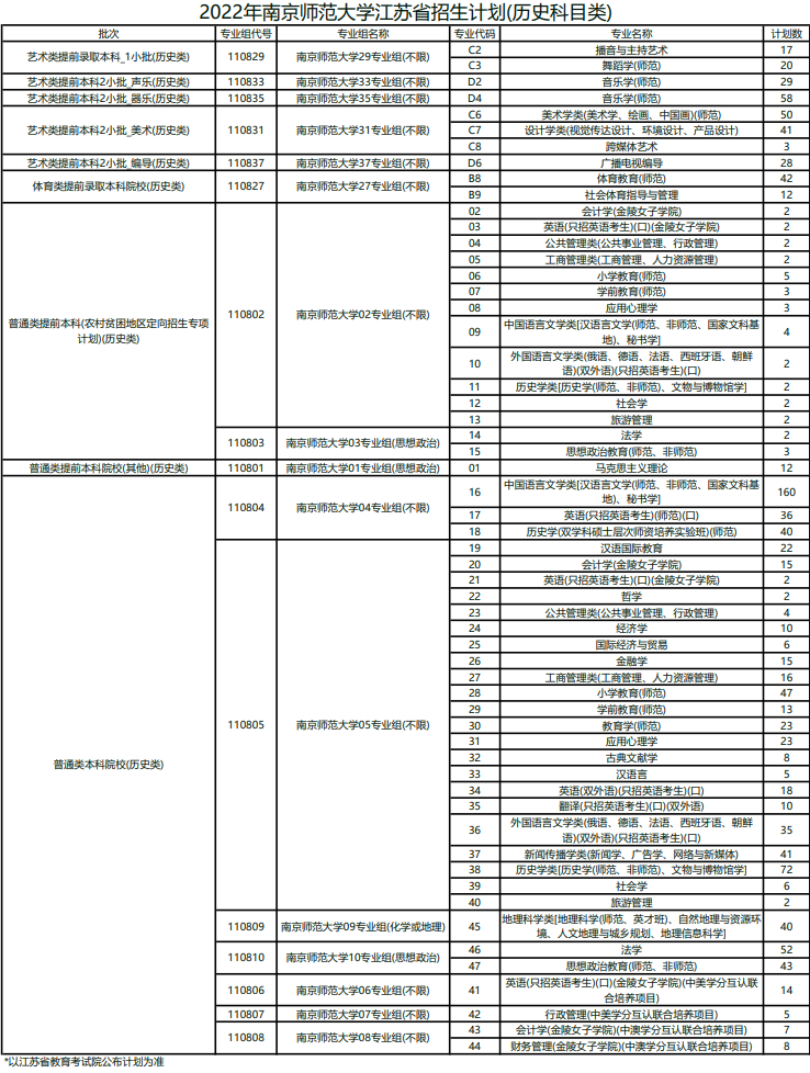 南师大招收历史类考生的专业有播音与主持艺术、舞蹈学(师范)、小学教育(师范)、学前教育(师范)、应用心理学、社会学、旅游管理、法学、马克思主义理论等。