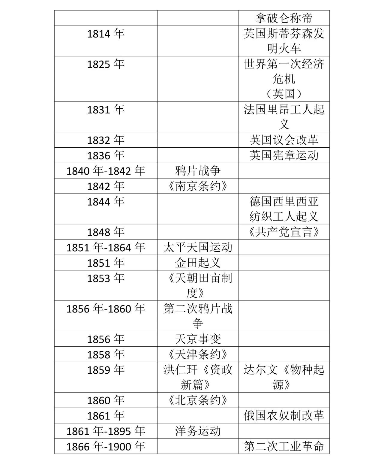 8.鸦片战争(1840~1842):战争中,广州北郊三元里人民自发起来抗击英国侵略者。1842 年 8 月,中英《南京 条约》签订,内容规定:①割香港岛给英国;②赔款 2100 万银元;③开放广州、厦门、福州、宁波、上海五口通商;④协定关税。影响:是中国半殖民地半封建社会的开端,中国进入了旧民主主义革命时期。