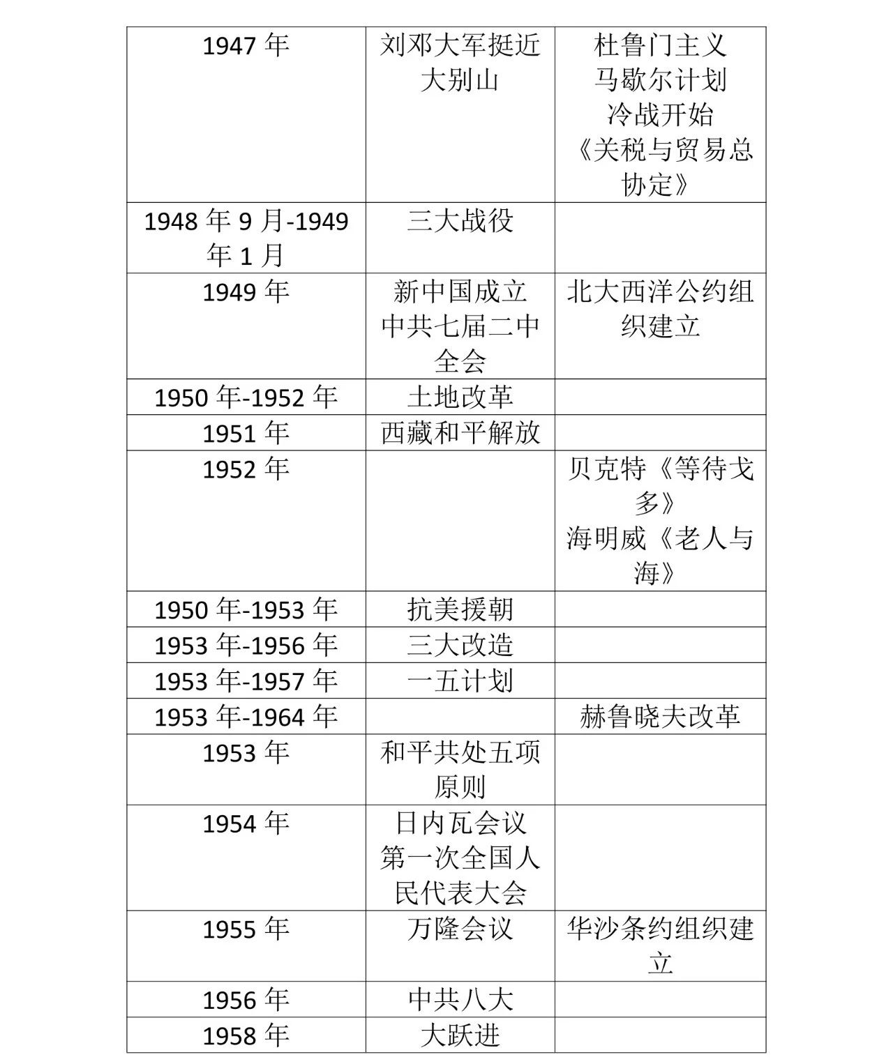 43.杜鲁门主义——它的出台是“冷战”开始的标志,是“冷战”在政治领域的表现。
