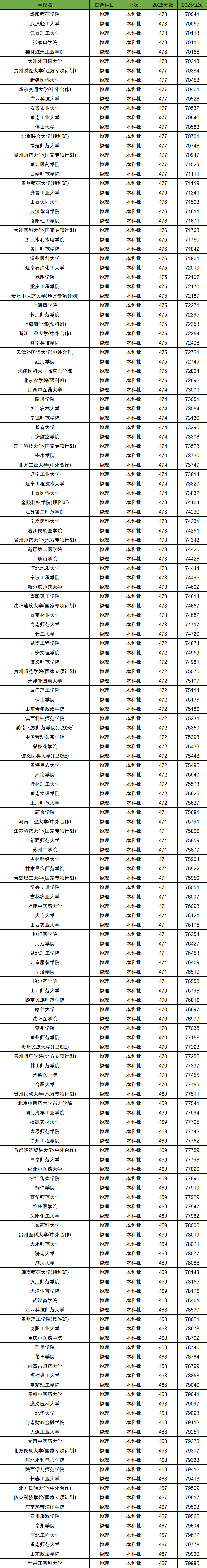 因为本文篇幅有限不能所有分数一一整理,以下将介绍贵州高考中物理类排名位次对应大学中前1万名、7-8万名对应的大学。
