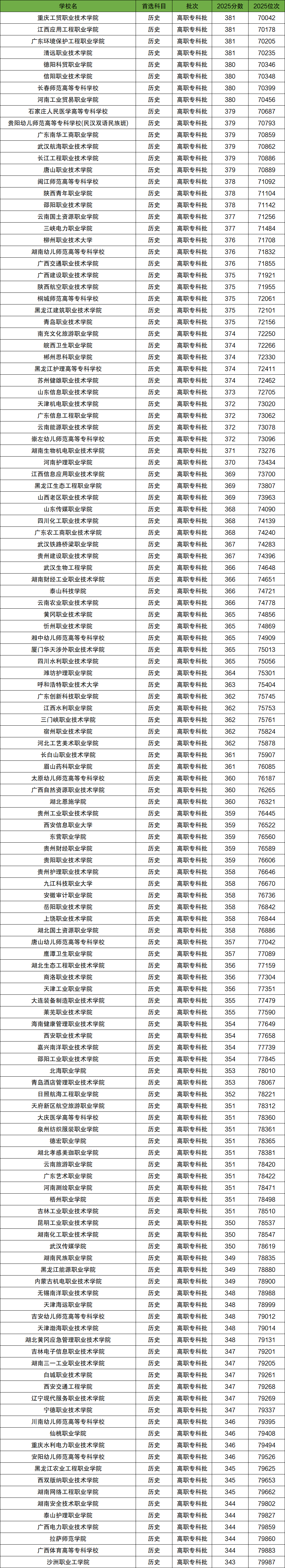 在7-8万名之间的历史类考生能上的学校有133所,对应的分数为381分~343分,对应位次为70042~79987位。