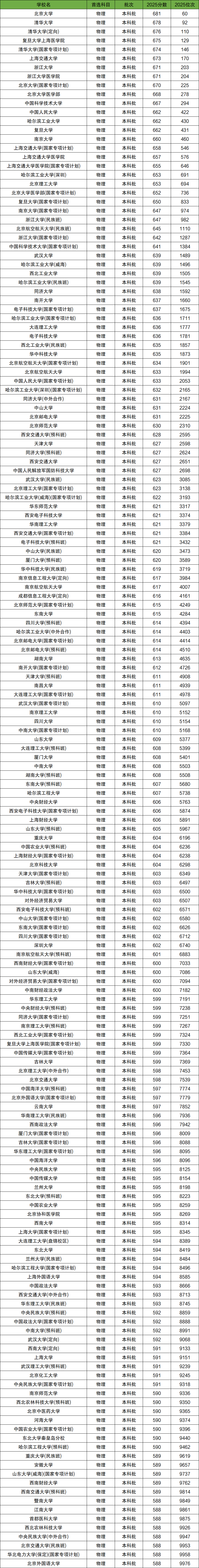 1、物理类前1万名:北京大学、清华大学、复旦大学上海医学院