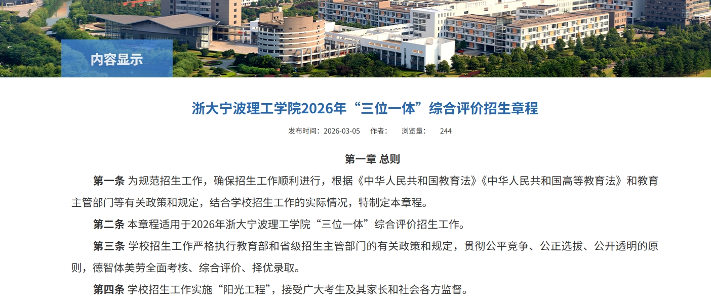 例如,2026年浙大宁波理工学院2026三位一体招生规定,色弱色盲考生不宜报考化学工程与工艺、高分子材料与工程等专业。这些细节在报名前就要确认清楚,避免因为不符合条件浪费名额。