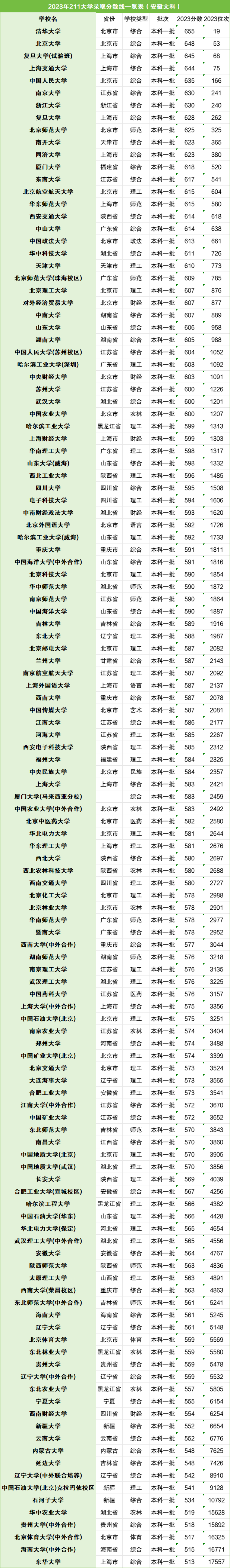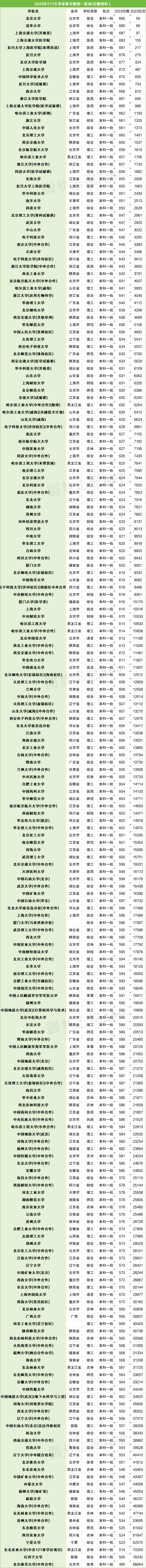 小编根据圆梦志愿提供的数据,整理了2023年211大学在安徽的录取分数线,如下: