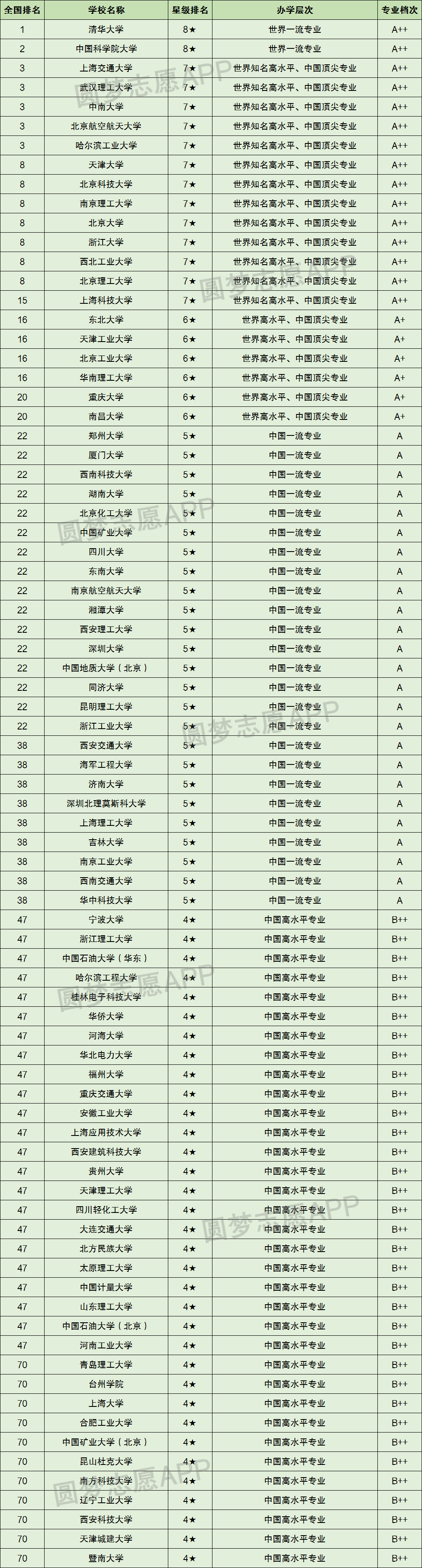 2022年校友会材料科学与工程大学排名上榜高校有80所,完整排名和专业评级如下表: