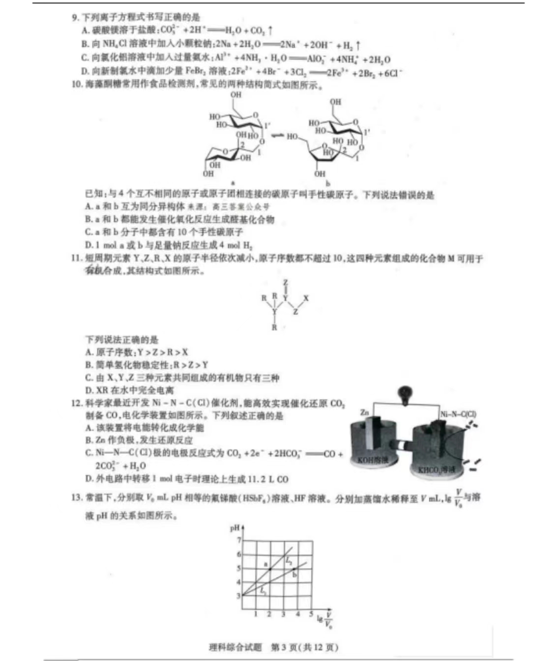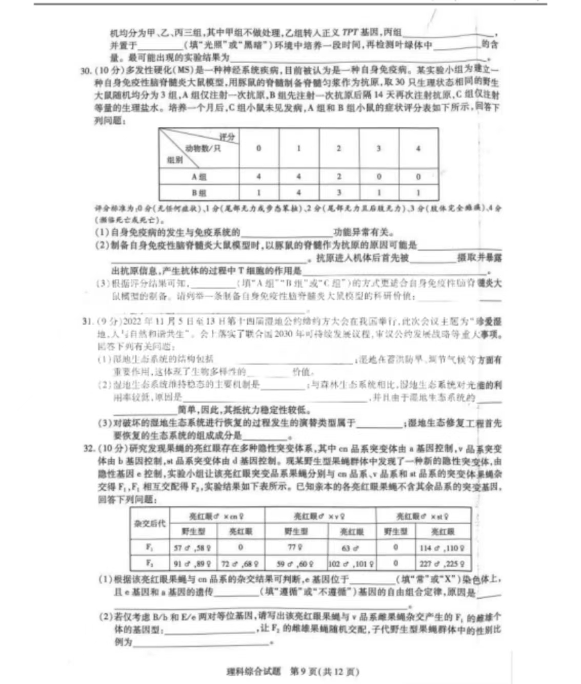 一、天一大联考2022-2023高三期末考试理综试卷及答案