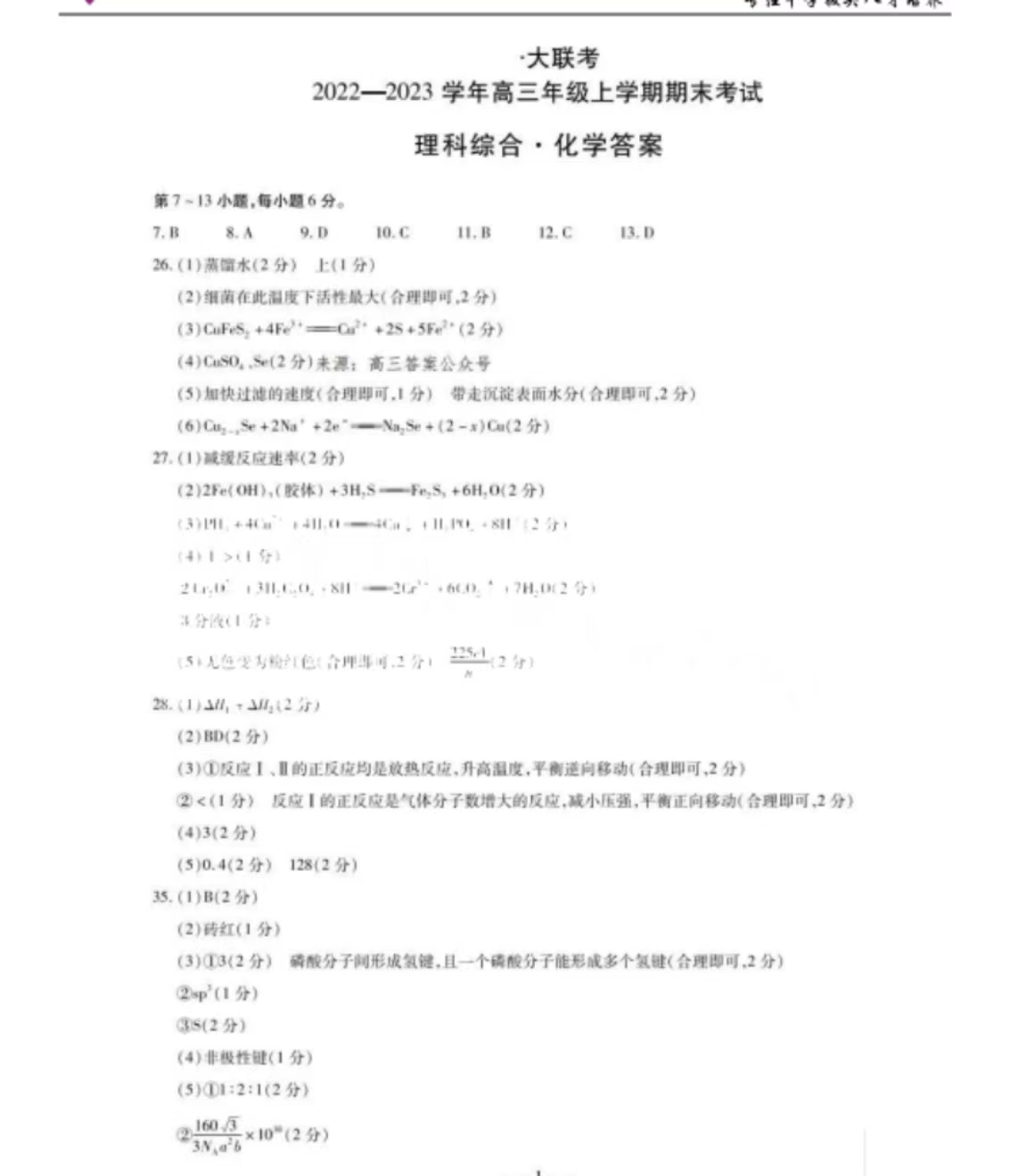 一、天一大联考2022-2023高三期末考试化学试卷及答案