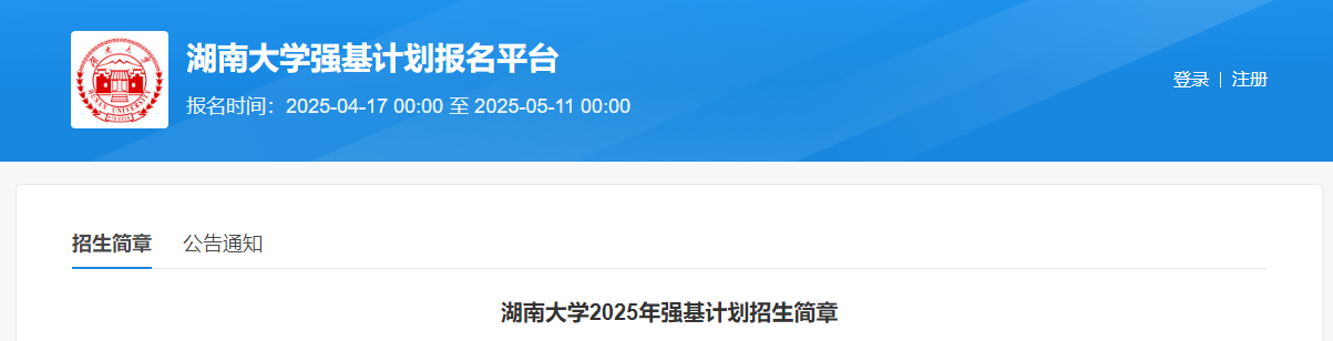 一、2025湖南大学强基计划报名安排