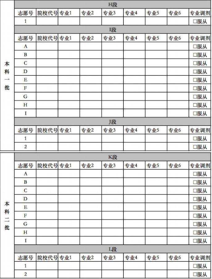 (注:每个院校志愿设置6个专业选项和1个服从专业调剂选项。)