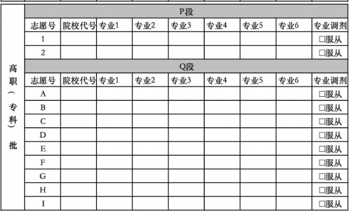 2、高职(专科)批(Q段、R段):9个平行院校志愿。