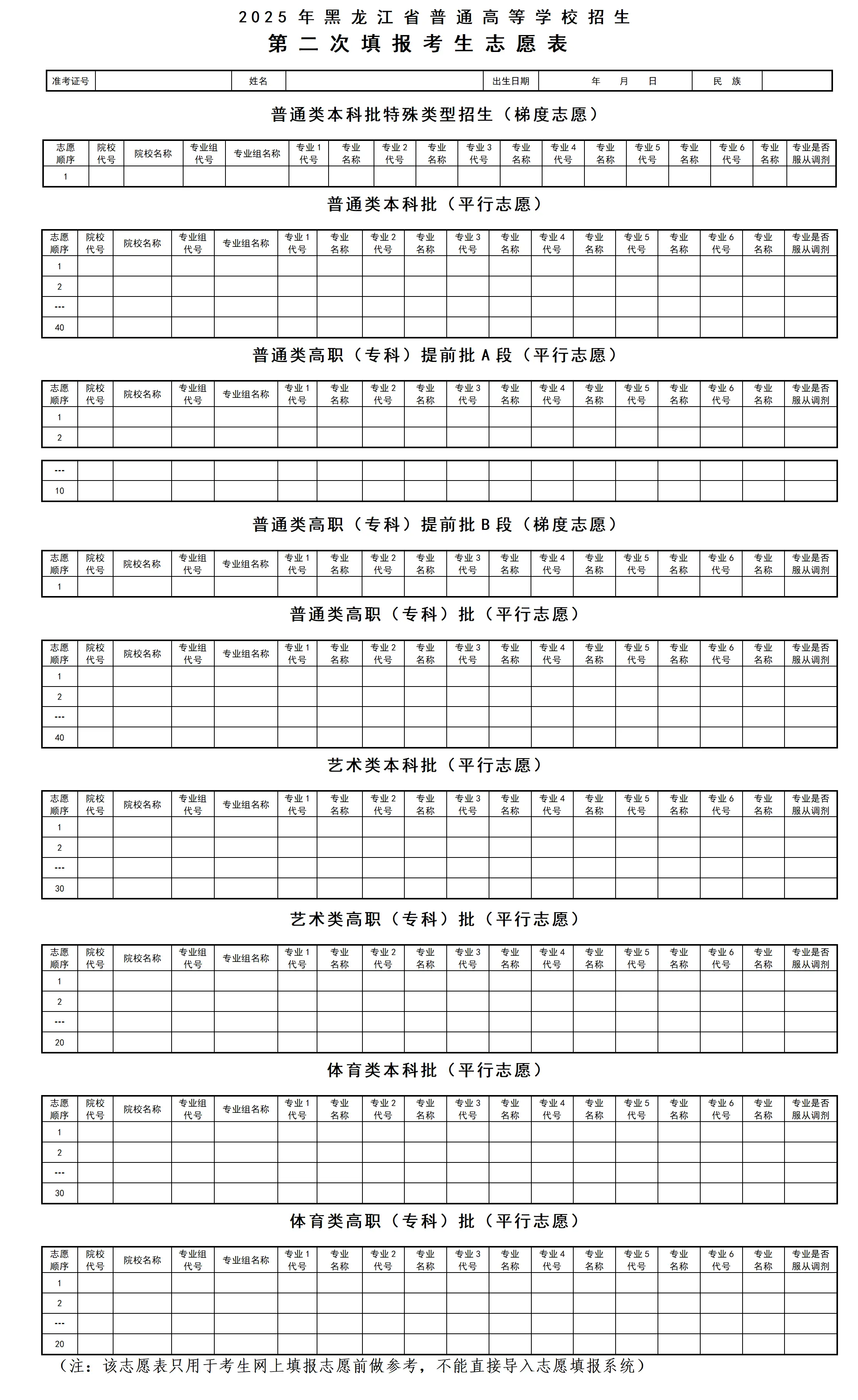 三、2026年黑龙江高考志愿草表