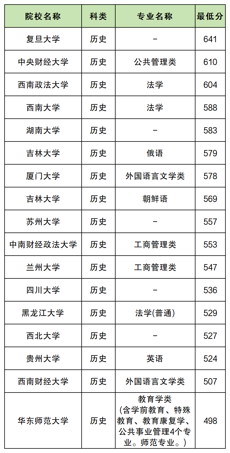 吉林高校专项计划历史类录取分数最低的是华东师范大学教育学类(含学前教育、