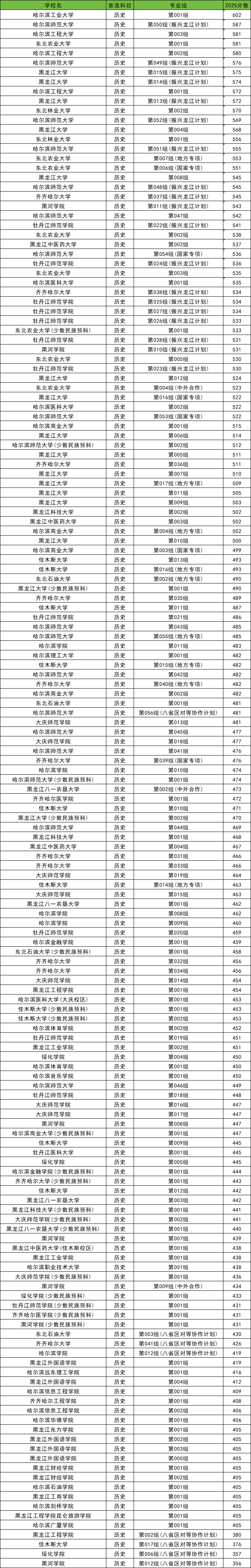 下面是2025年黑龙江省内本科高校历史类录取分数线一览表: