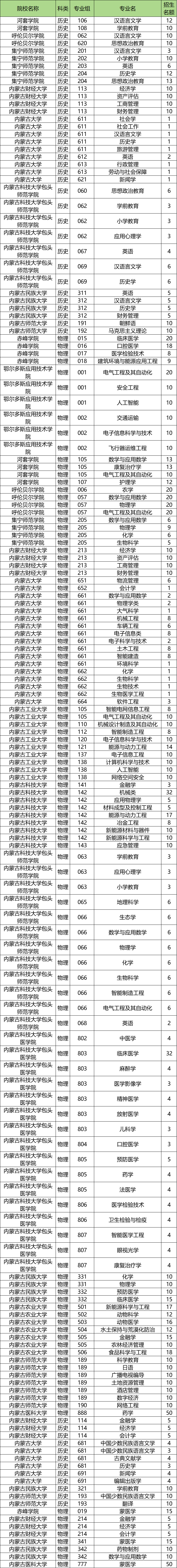 内蒙古地方专项大学及专业名单完整版如下表所示(含招生计划):