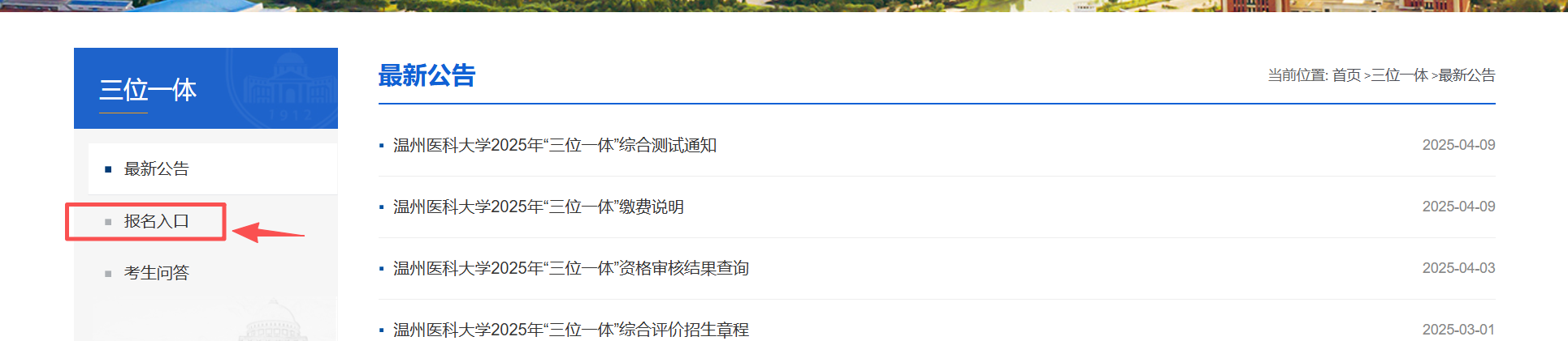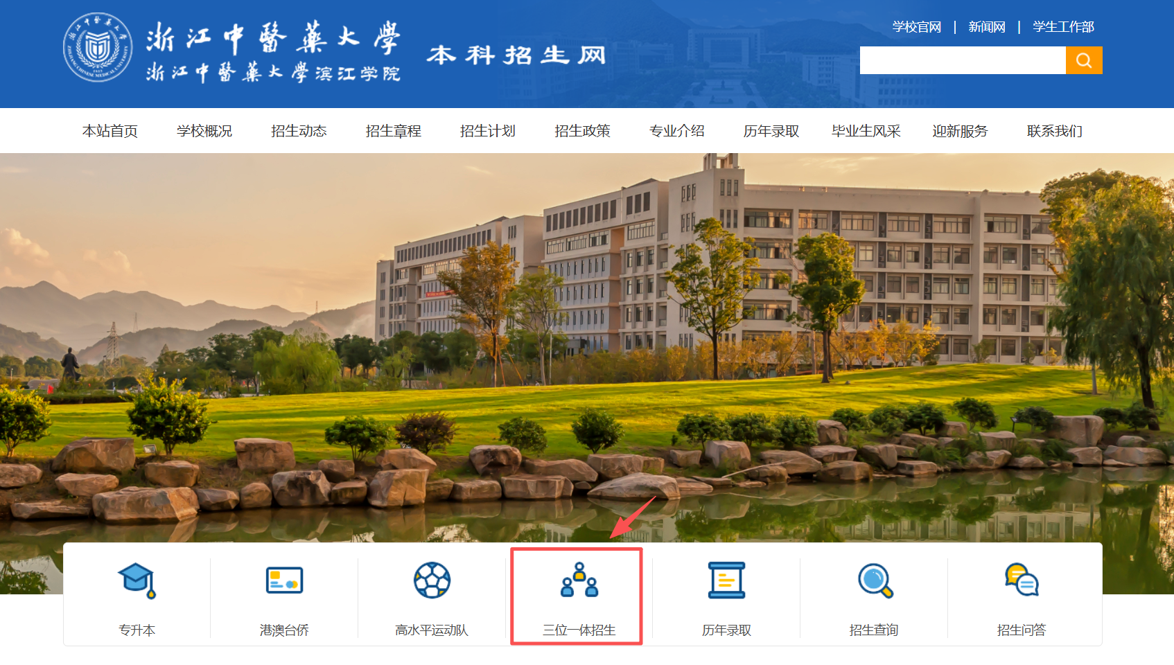 报名入口:登录浙江万里学院本科招生网,点击“‘三位一体’报名”。