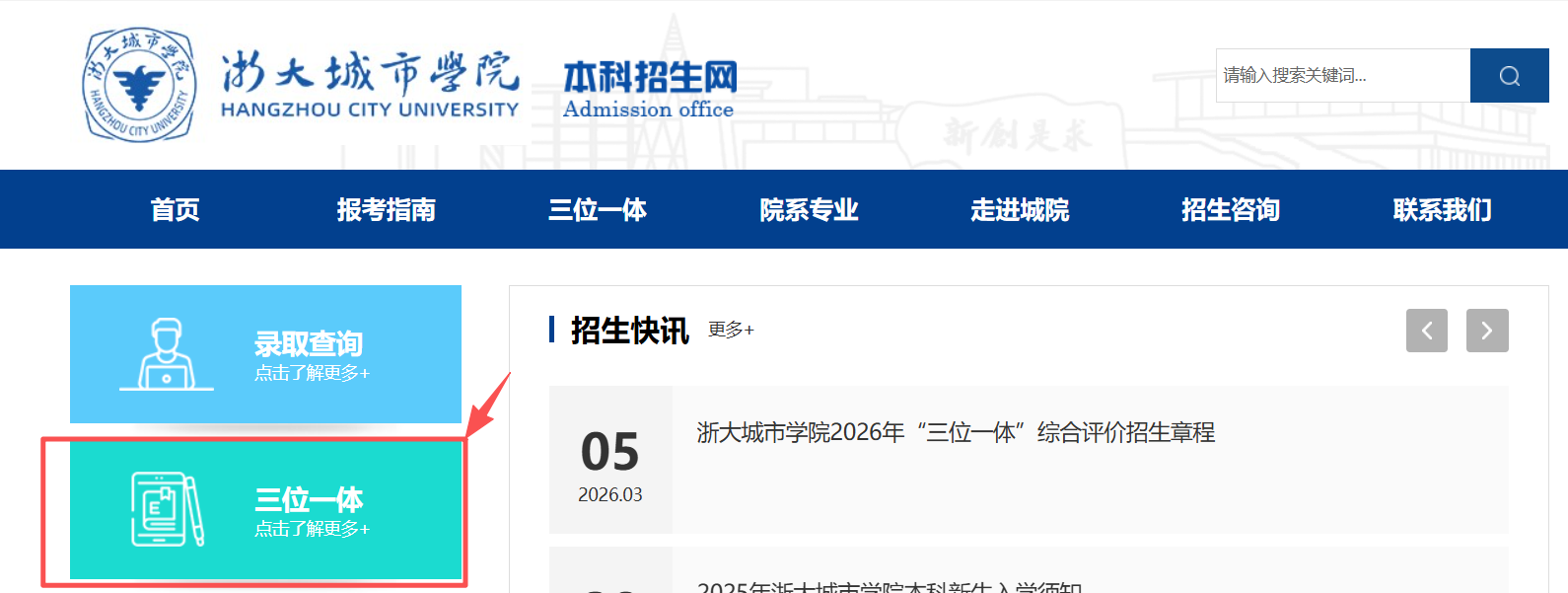 浙江省教育考试院已官宣,2026年浙江省属三位一体报名时间为3月7日9:00—3月20日17:00,参与的省内院校共计32所。考生可登录目标院校的本科招生网,在"三位一体"或"招生动态"栏目中查看最新招生简章,并点击报名链接进入系统。