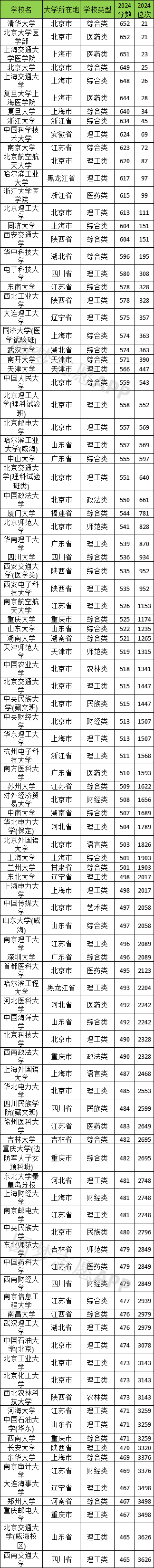 由于本文篇幅有限,在此整理的是2024年全国各大学(公办)在青海省理科和文科的录取分数线TOP100一览表,详情如下: