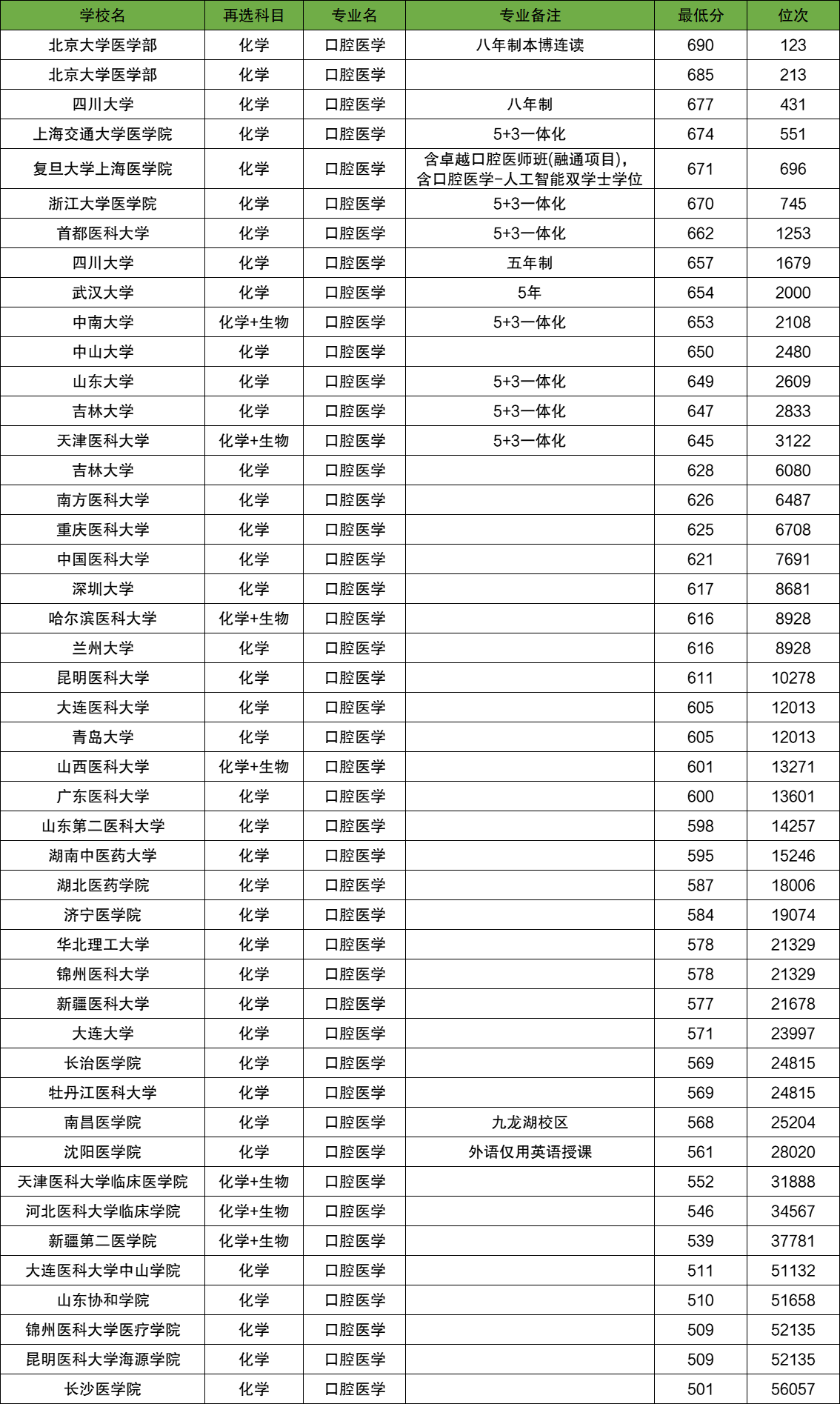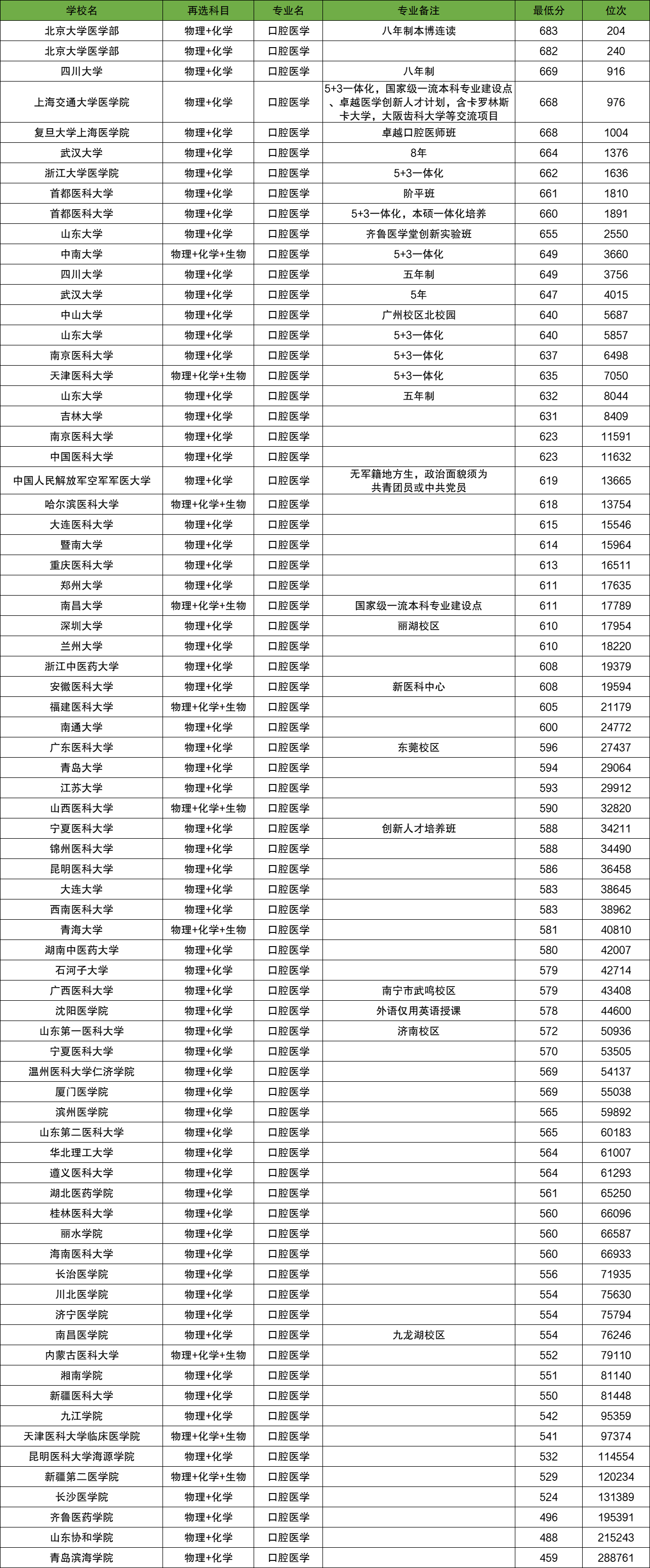 上海交通大学医学院(口腔医学,5+3一体化):最低分668;