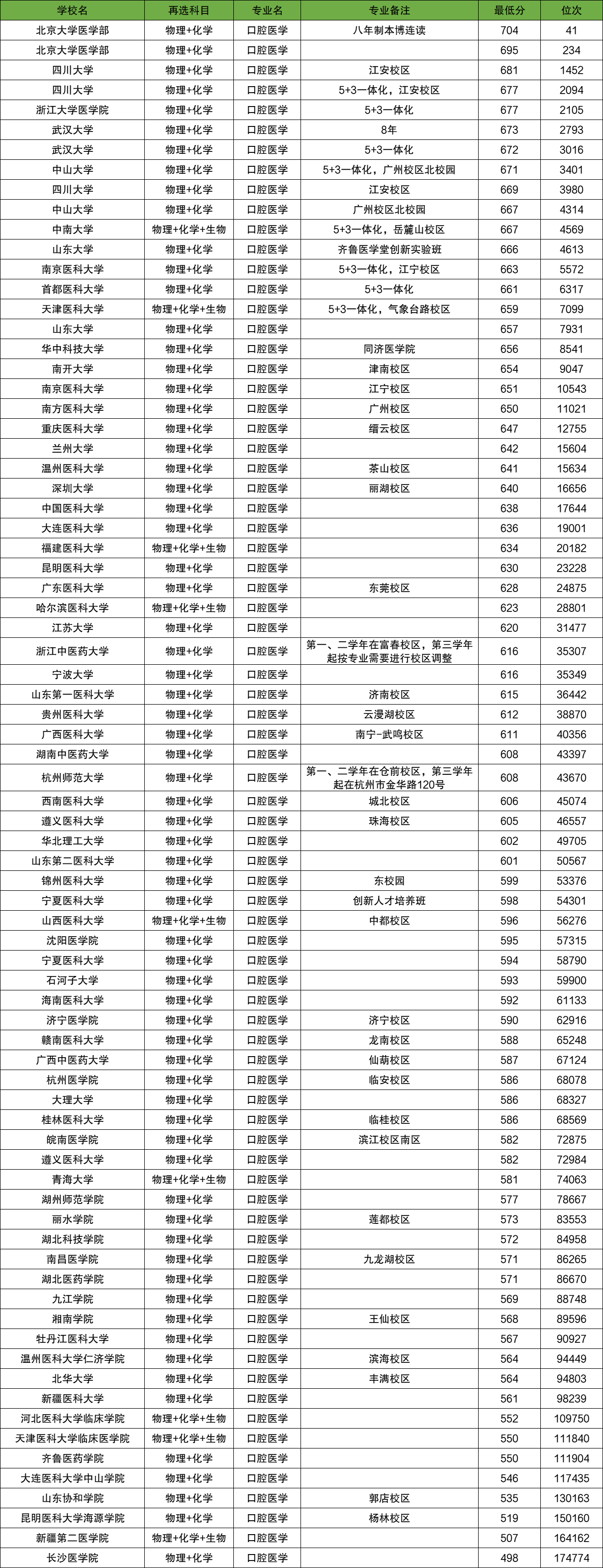 北京大学医学部(口腔医学,八年制本博连读):投档最低分690分;
