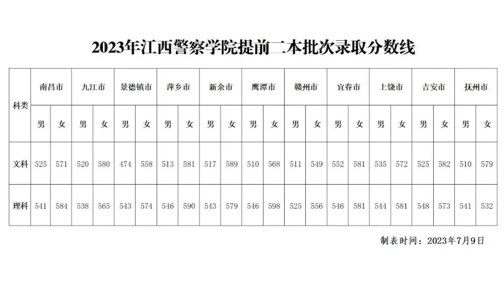 学校的公安类专业(含公安学、公安技术专业)分数线均是按各地市进行划分的,不同地市的考生报考江西警察学院的分数线也有很大区别: