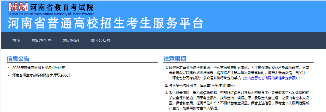 河南省教育考试院→河南省普通高校招生考生服务平台