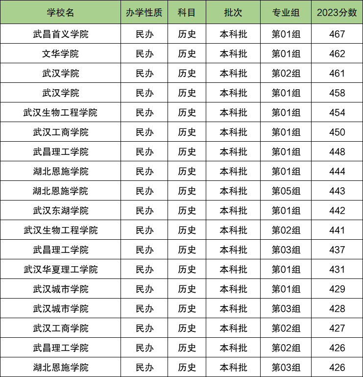 2023年湖北十大民办大学历史类招生分数线范围在426分~467分之间,历史类考生至少要达到本科线(426分)才能报考。