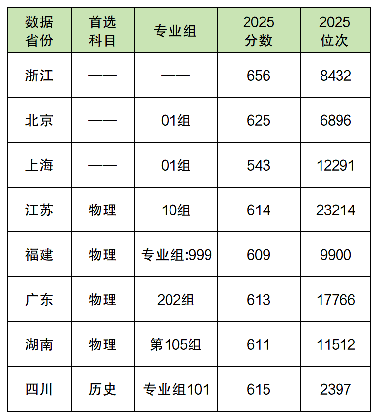001专业组:611分、2119位