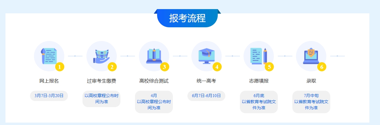 考生可以同时报名多所高校,提高初审通过率,待初审通过后若校测时间冲突,再做好权衡即可,而且就算没有考上,也不会影响普通本科批次的填报。