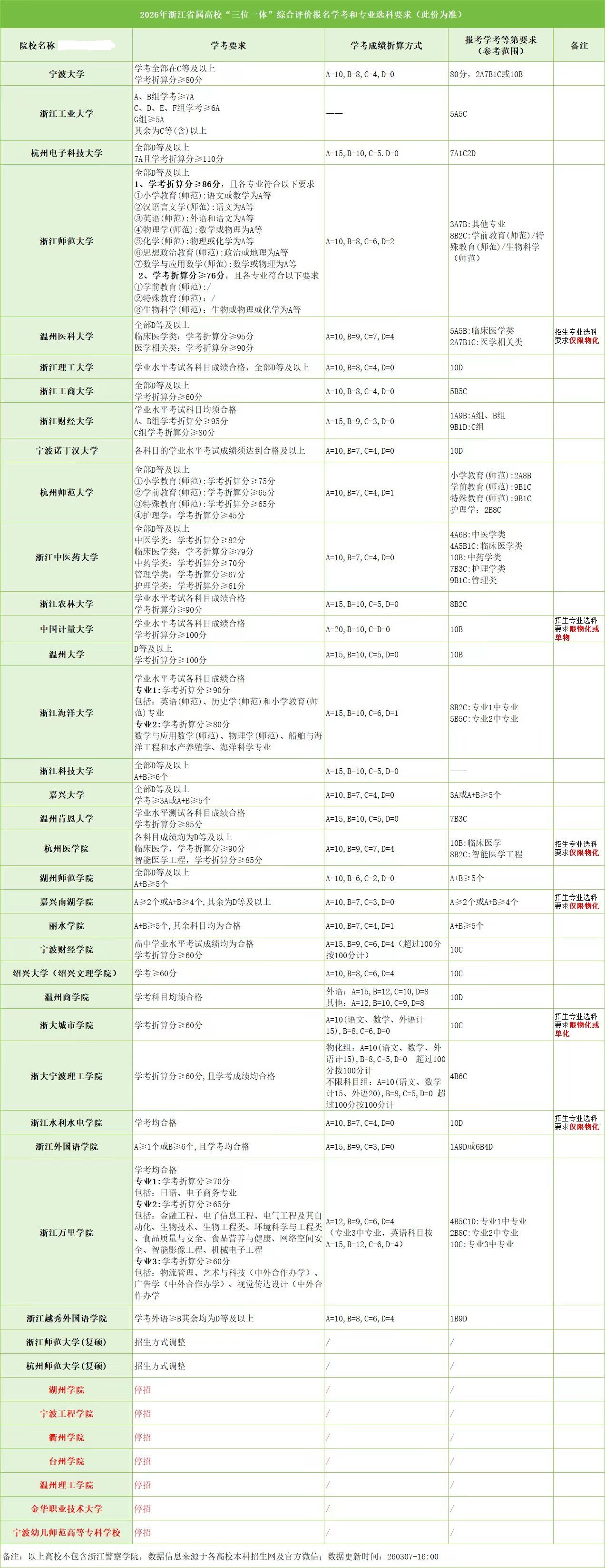 部分院校对于学考成绩有明确要求,比如浙江工业大学就要求报考A组和B组需要学考成绩7A。