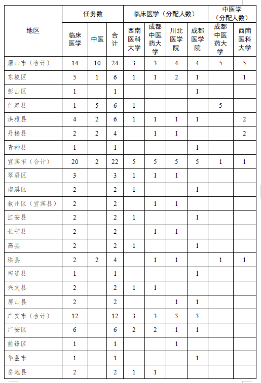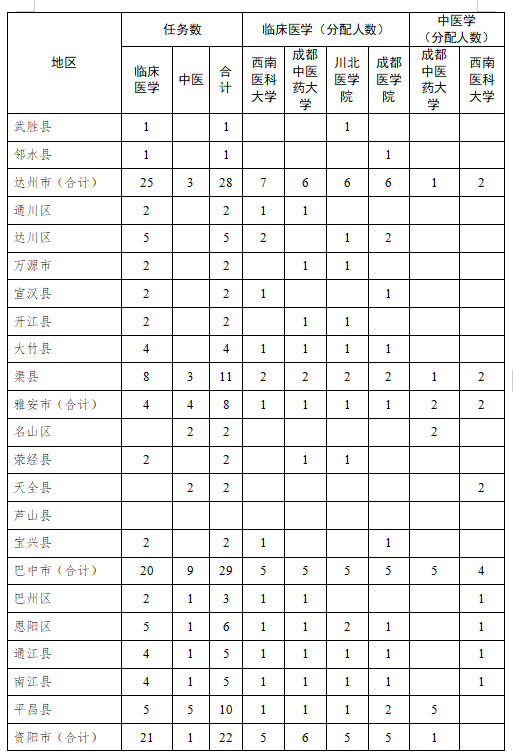 3、川北医学院招生计划:临床医学84人、中医学39人