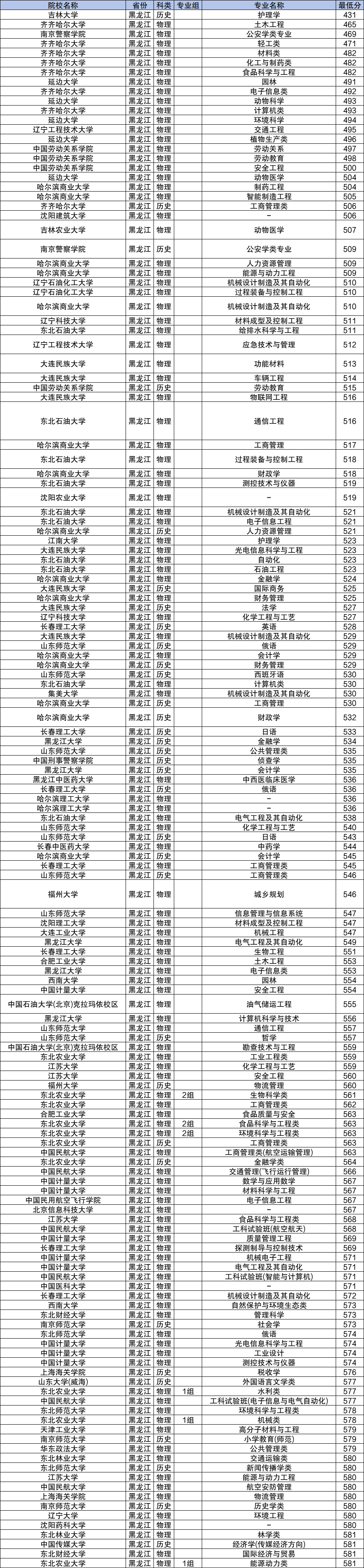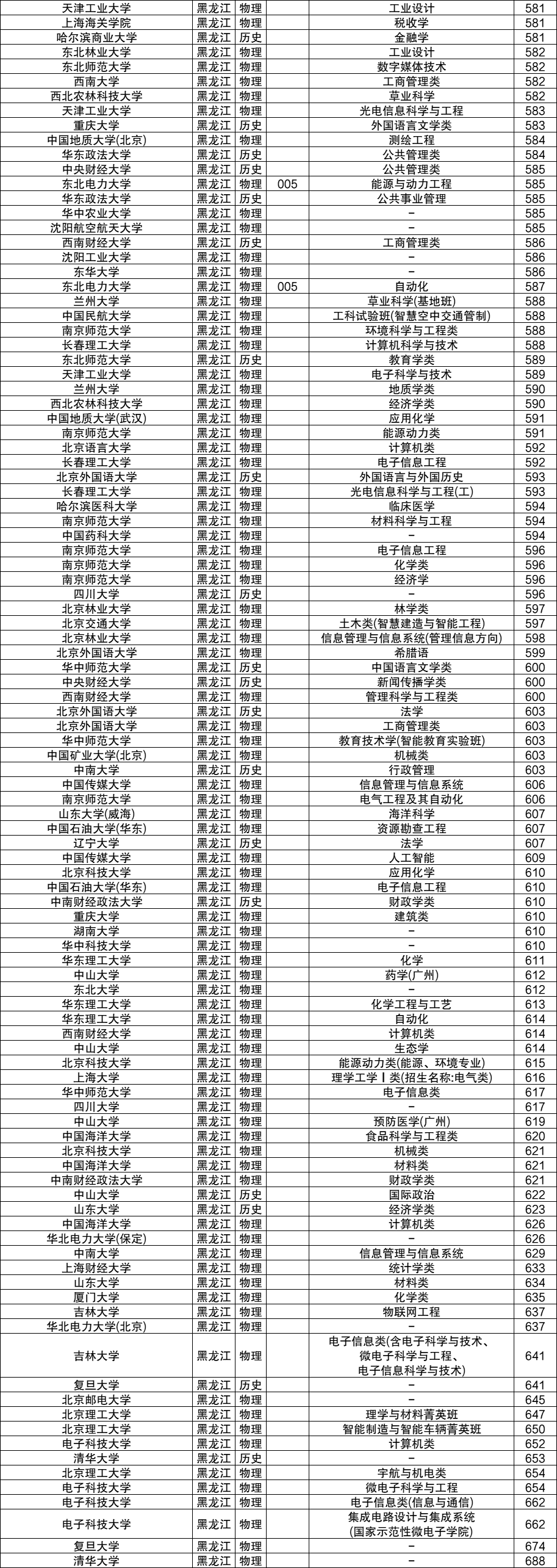 以黑龙江大学为例,物理类各个专业最低分数线如下: