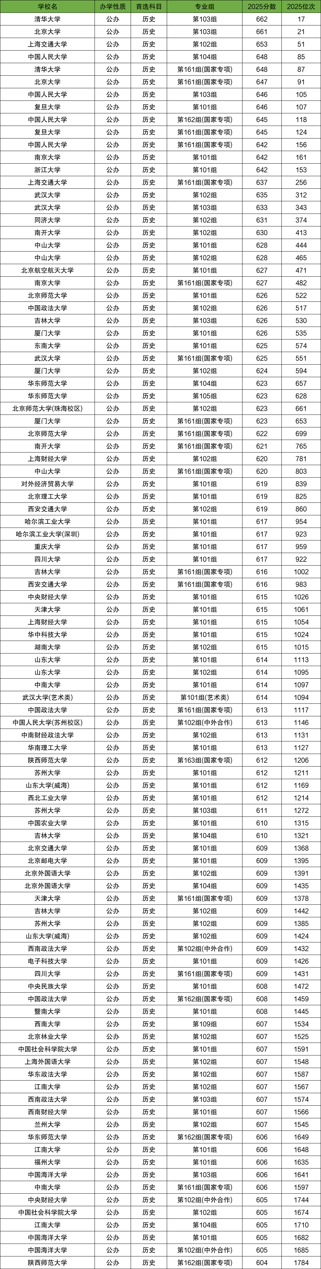 下面是2025年在江西省历史类录取分数线及位次排名前百强高校一览表: