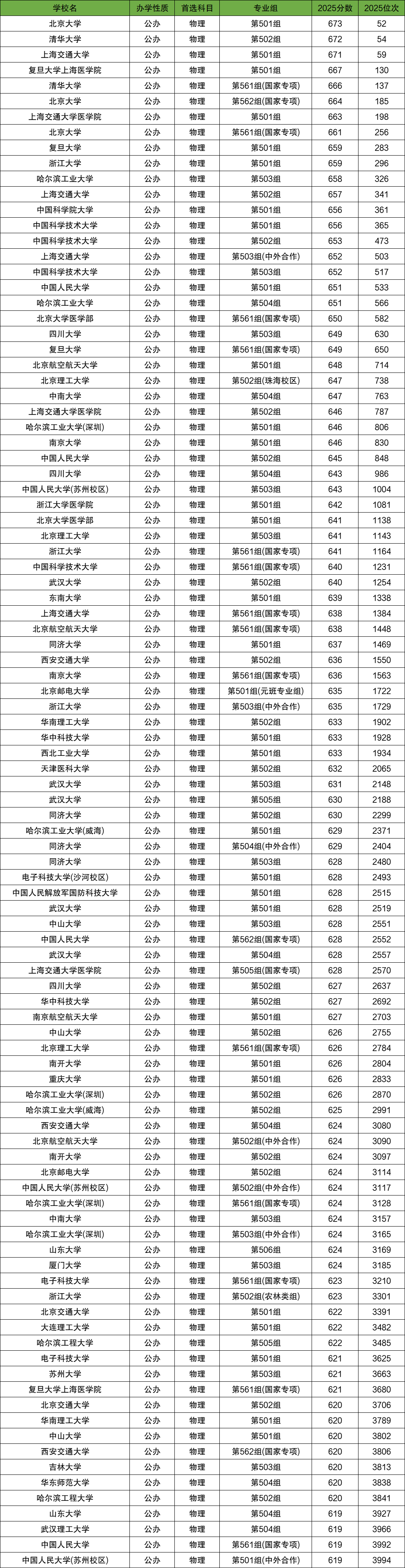 下面是2025年在江西省物理类录取分数线及位次排名前百强高校一览表:
