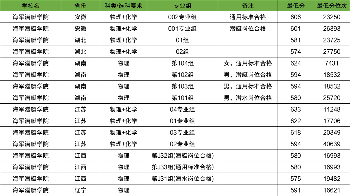 海军潜艇学院第J31组,2024年投档最低分574分;