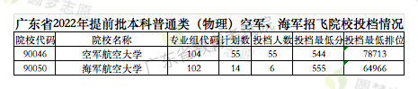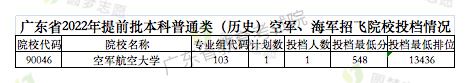 2022年空军航空大学在广东省物理类最低录取分数线为:544分