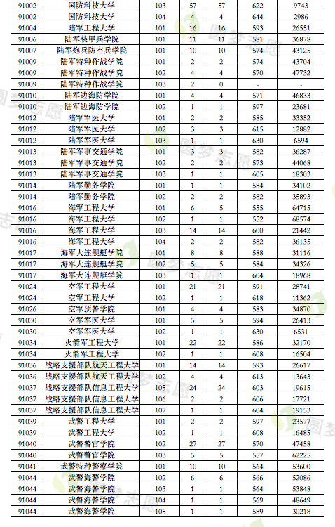 二、2022年军校最低录取分数线广东一览表