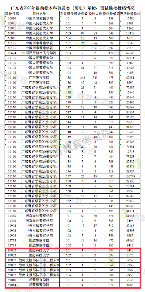 2. 广东历史类军校录取分数线2022年最低