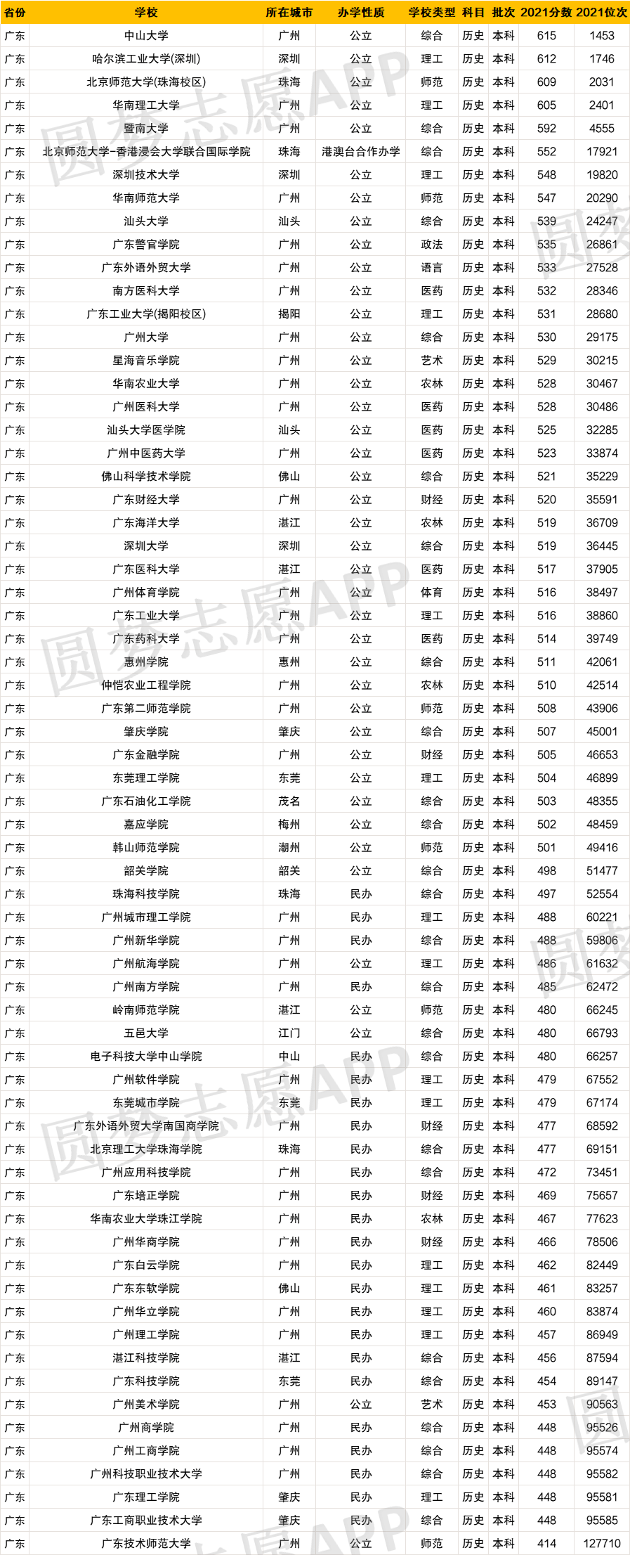 10、广东警官学院:2021年最低录取分数线539分,以下为2021年广东省所有本科大学历史类分数线: