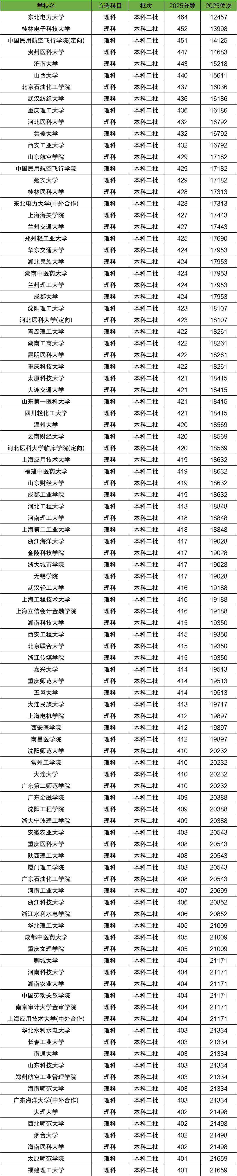2025年全国二本大学在新疆理科分数线最高的院校是:东北电力大学,2025年最低录取分数线464分,最低位次为12457位;