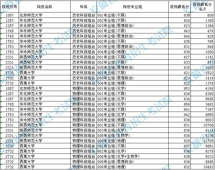 北京师范大学公费师范生在湖北的分数线为:历史类最低619分、物理类644分。
