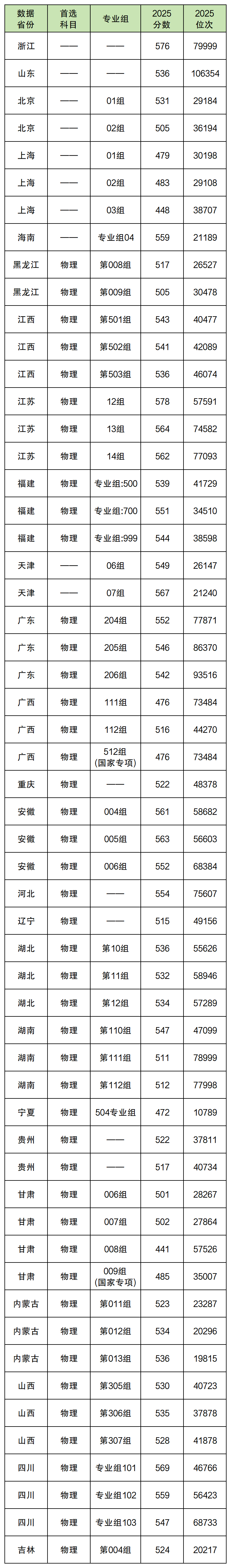 物理类:J31组610分、J32组581分、J3B组545分、J41组594分