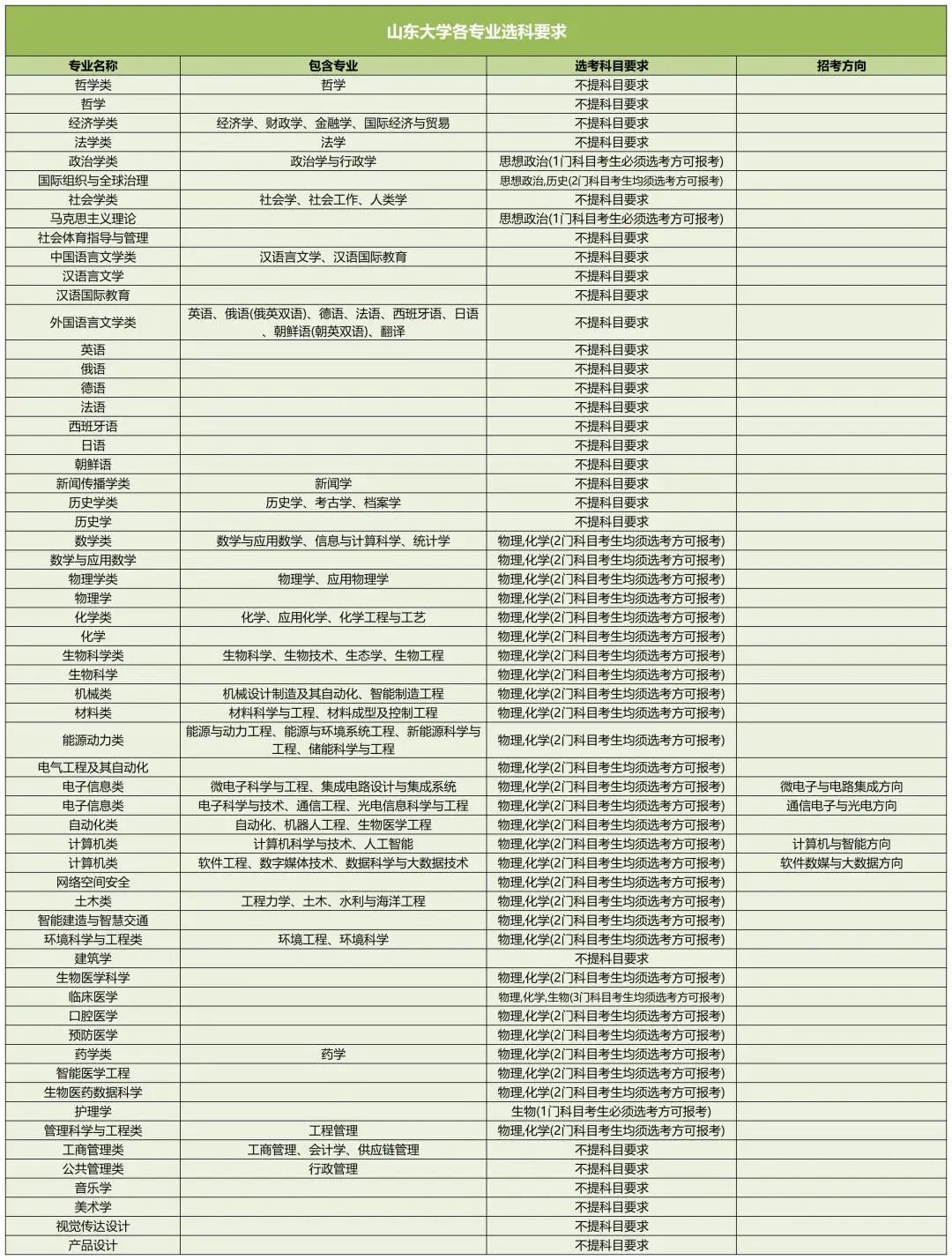 以下是山东大学新高考选科要求: